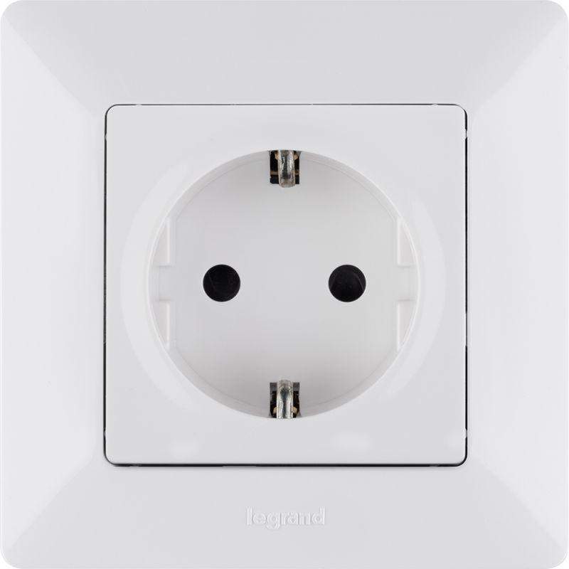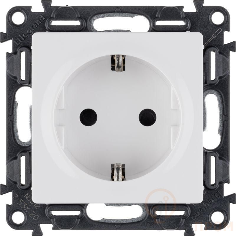 Розетка 1-м СП Valena Life 16А IP20 250В 2P+E защ. шторки безвинтов. клеммы с лицев. панелью механизм бел. Leg 753420