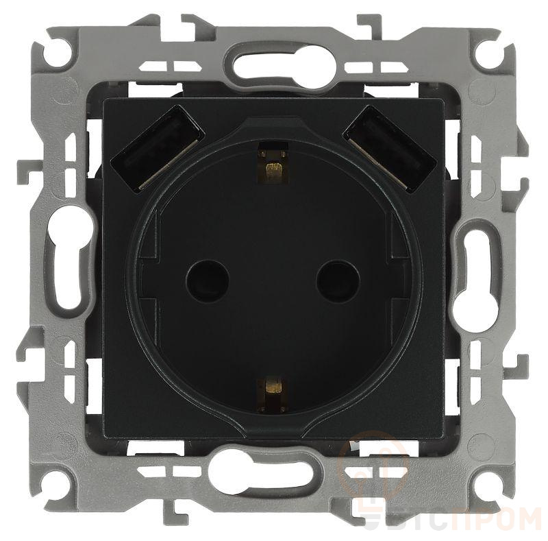 Розетка с USB серии Эра Elegance цвет антрацит 14-4109-05. Номинальные характеристики . Оснащёна автоматическими клеммами для надёжной фиксации жил кабеля в механизме. Рамки приобретаются отдельно. Рамки Эра Elegance ПЛАСТИК: 1 пост 14-5001-хх, 2 поста 14-5002-хх, 3 поста 14-5003-хх, 4 поста 14-5004-хх, 5 постов 14-5005-хх; СТЕКЛО: 1 пост 14-5101-хх, 2 поста 14-5102-хх, 3 поста 14-5103-хх, 4 поста 14-5104-хх; МЕТАЛЛ: 1 пост 14-5201-хх, 2 поста 14-5202-хх, 3 поста 14-5203-хх, 4 поста 14-5204-хх; ДЕРЕВО: 1 пост 14-5301-хх, 2 поста 14-5302-хх, 3 поста 14-5303-хх, 4 поста 14-5304-хх (хх - код цвета: 00-прозрачный, 01-белый, белёный дуб, 02-слоновая кость, 03-алюминий, 04-шампань, 05-чёрный, чёрное дерево, 07-ясень, 09-дуб, 10-венге, 11-клён, 14-медь, 21-жёлтый, 22-оранжевый, 23-красный, 25-бордо, 26-лайм, 27-зелёный, 28-голубой, 29-синий, 30-розовый, 31-мокко, 32-серый, 41-сталь, 42-титан).