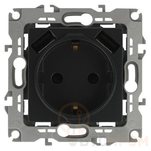 Розетка с заземлением с USB со шторками серии Эра 12 скрытой установки механизм цвет антрацит 12-4109-05. Номинальные характеристики 16А 250В/3А-5В . Сделана из поликарбоната. Монтаж в подрозетник производится и на лапки, и на винты. Рамки приобретаются отдельно. Рамки Эра 12: 1 пост 12-5001-хх, 2 поста 12-5002-хх, 3 поста 12-5003-хх, 4 поста 12-5004-хх, 5 постов 12-5005-хх. Рамки Эра 12 Сатин: 1 пост 12-5101-хх, 2 поста 12-5102-хх, 3 поста 12-5103-хх, 4 поста 12-5104-хх, 5 постов - 12-5105-хх (хх - код цвета: 01-белый, 02-слоновая кость, 03-алюминий, 04-шампань, 05-антрацит, 06-чёрный, 07-ольха(белёный дуб-сатин), 08-вишня, 09-дуб, 10-венге, 11-сосна, 21-жёлтый, 22-оранжевый, 23-красный, 24-охра, 25-бордо, 26-лайм, 27-зелёный, 28-голубой, 29-синий).