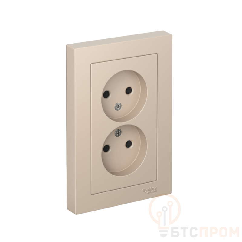 Розетка двойная Systeme Electric (ранее Schneider Electric) серии AtlasDesign (в сборе, цвет песочный) без заземления со шторками подходит для сетей 250 В, на ток 16 А. Лицевые детали из качественного ABS-пластика, устойчивого к царапинам и УФ-излучению. Двойная розетка позволяет подключить два устройства в одном месте. Изделие поставляется в комплекте с рамкой того же цвета.
