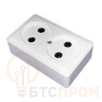 Розетка 2-м ОП без заземл. бел. БЕЛТИЗ РА10-012 Молодечно представляет собой электроустановочный механизм двухместной розетки. Корпус прямоугольной формы, из пластика, со стороной, равной 100 мм, поверхность гладкая, белого цвета. Монтируется на глубину 39,4 мм, на поверхность стены.
