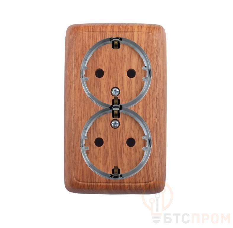 –Розетка 2-м ОП Альфа 16А IP20 250В с заземл. с изолир. пластиной (стакан) дуб HEGEL РА16-183-05
