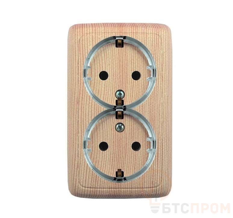 –Розетка 2-м ОП Альфа 16А IP20 250В с заземл. с изолир. пластиной (стакан) сосна HEGEL РА16-183-02