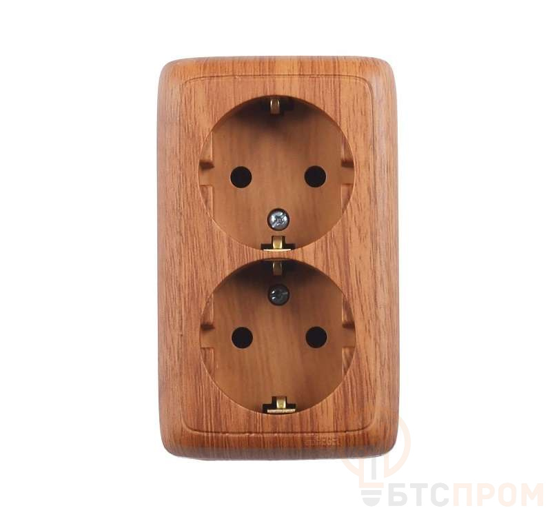 Розетка 2-м ОП Альфа 16А IP20 250В с заземл. защ. шторки с изолир. пластиной дуб HEGEL РА16-154-05 фото в каталоге от BTSprom.by