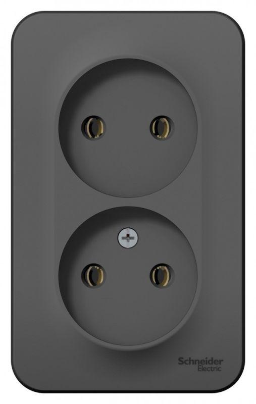 Розетка 2-м ОП Blanca 16А IP20 250В без заземл. без защ. шторок с изолир. пластиной антрацит SE BLNRA000216