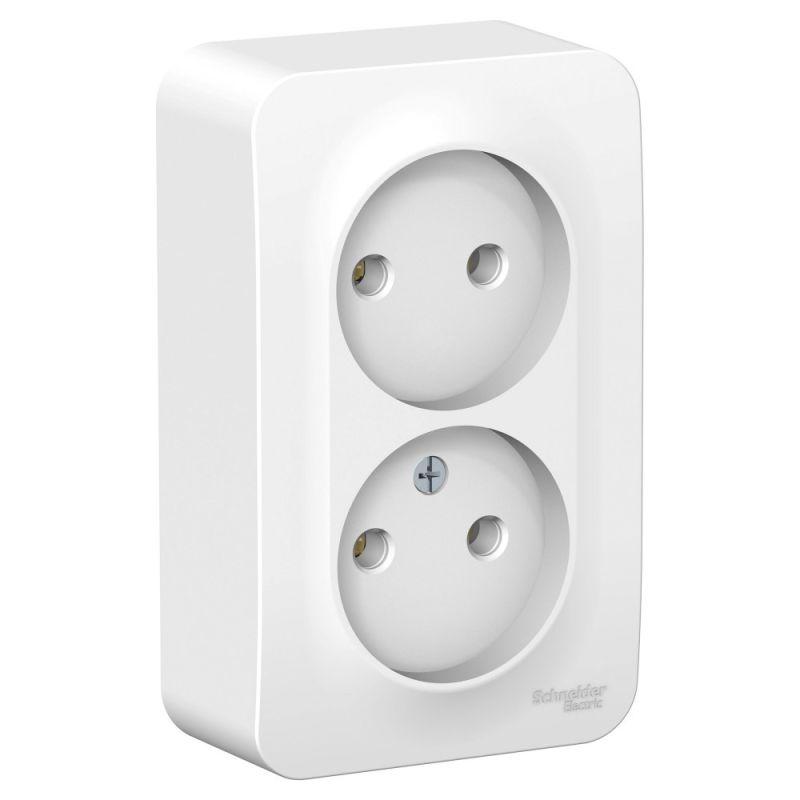 Розетка Systeme Electric (ранее Schneider Electric) BLANCA (белый, открытой установки) двухместная, без шторок и заземления, с изолирующей пластиной предназначена для сетей до 250В, на ток до 16А. Двухместная розетка позволяет подключить два устройства в одном месте. Она изготовлена из ABS-пластика, проста в установке и удобна в применении.