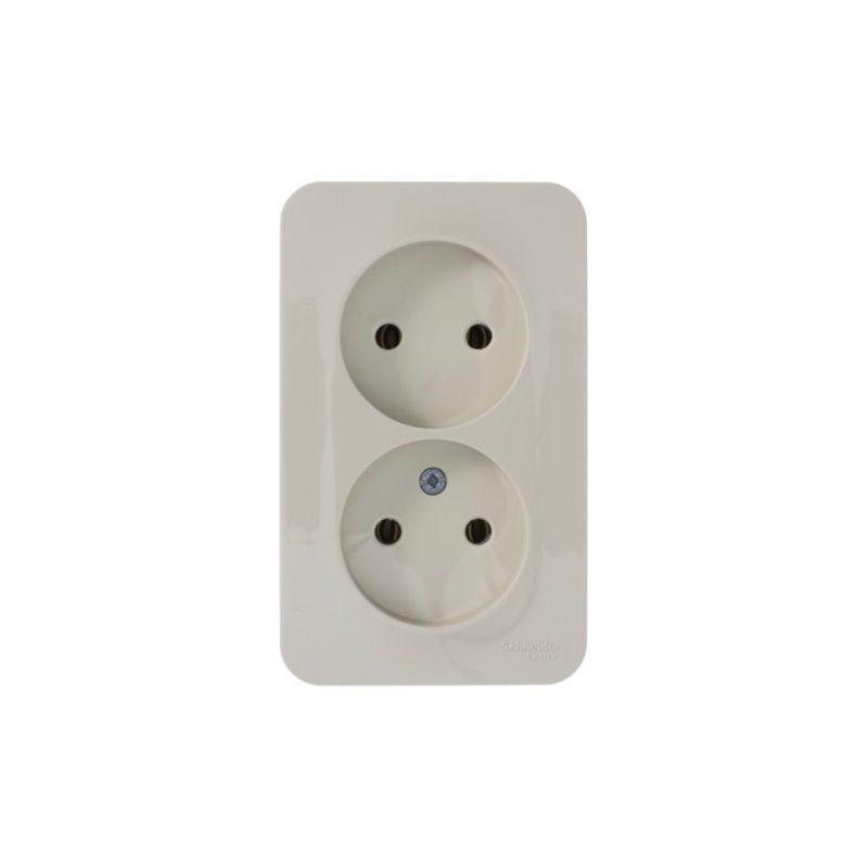Розетка Systeme Electric (ранее Schneider Electric) BLANCA (открытой установки, цвет бежевый) двухместная без заземления и шторок, с изолирующей пластиной подходит для сетей 250 В, на ток 16 А. -Корпус изделия выполнен из ABS-пластика. - Четкая маркировка клемм для безошибочного подключения. - Увеличенная площадь контактной поверхности гарантирует надежность и качество соединения, исключая потери.
