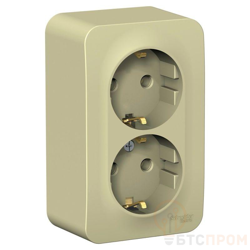 Розетка Systeme Electric (ранее Schneider Electric) BLANCA (открытой установки, цвет бежевый) двухместная с заземлением без шторок, с изолирующей пластиной подходит для сетей 250 В, на ток 16 А. - Заземляющий контакт обеспечивает дополнительную защиту от удара электрическим током. При наличии заземления электрический потенциал уходит в землю, защищая человека. -Корпус изделия выполнен из ABS-пластика.