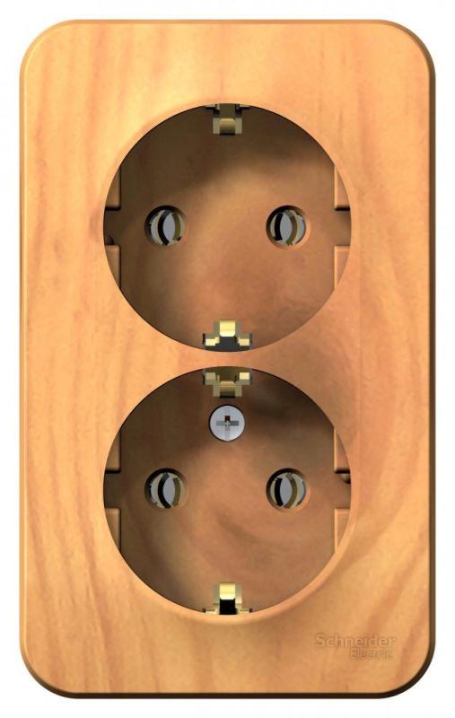 Розетка Systeme Electric (ранее Schneider Electric) BLANCA (ясень, открытой установки) двухместная, без шторок, с заземлением и изолирующей пластиной предназначена для сетей до 250В, на ток до 16А. Двухместная розетка позволяет подключить два устройства в одном месте. Заземление обеспечивает безопасность при косвенном прикосновении. Изделия цвета Ясень обладают уникальным рисунком, напоминающим древесный сруб. Она изготовлена из ABS-пластика, проста в установке и удобна в применении.