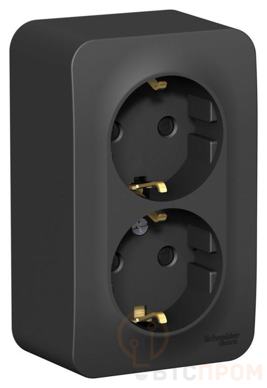 Розетка 2-м ОП Blanca 16А IP20 250В с заземл. защ. шторки с изолир. пластиной антрацит SE BLNRA011216