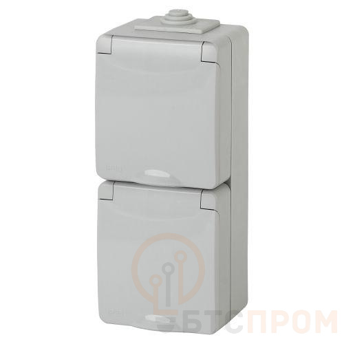 Розетка 2х2P+E верт. IP65, шторки, 16АХ-250В, ОУ, Эра Эксперт, серый.