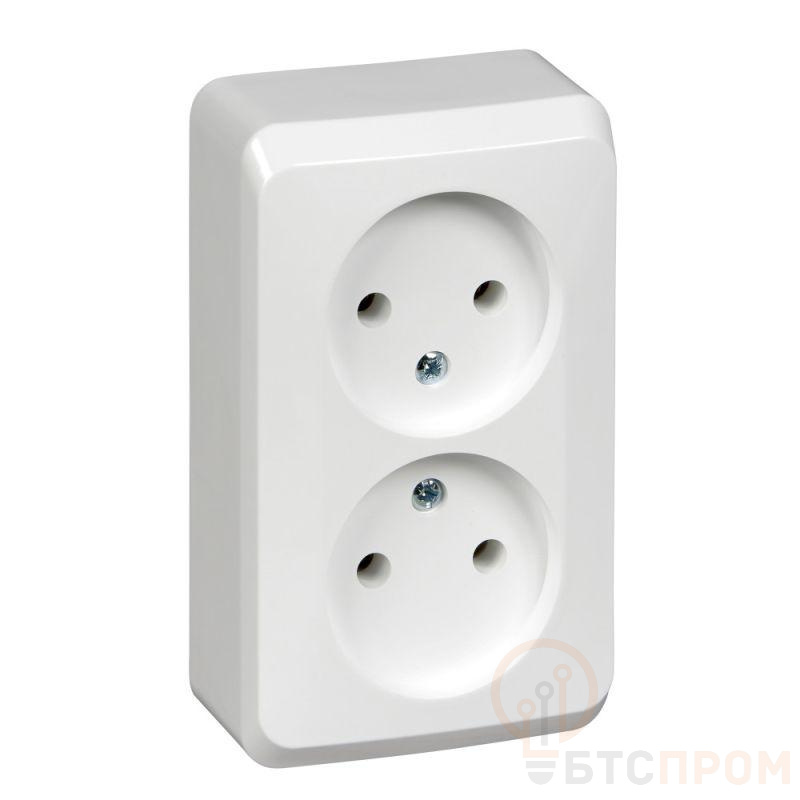 Розетка Systeme Electric (ранее Schneider Electric) ЭТЮД (белый, открытой установки) двухместная, без шторок и заземления предназначена для применения в сетях до 250В, на ток до 16А. Двухместная розетка позволяет подключить два устройства в одном месте. Она проста в установке и удобна в применении. Сделано в России.