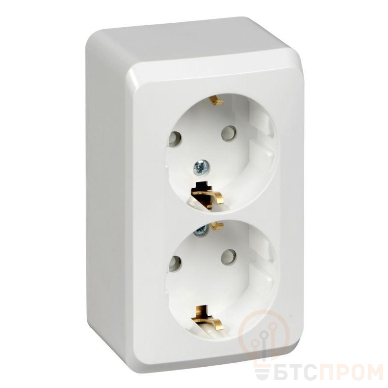 Розетка Systeme Electric (ранее Schneider Electric) ЭТЮД (белый, открытой установки) двухместная с заземлением и шторками предназначена для применения в сетях до 250В, на ток до 16А. Двухместная розетка позволяет подключить два устройства в одном месте. Шторки и заземление обеспечивают дополнительную безопасность при косвенных прикосновениях. Сделано в России.
