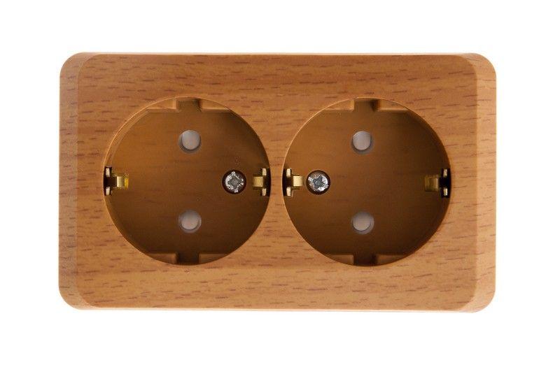 Розетка Systeme Electric (ранее Schneider Electric) ЭТЮД (бук, открытой установки) двухместная с заземлением и шторками предназначена для применения в сетях до 250В, на ток до 16А. Двухместная розетка позволяет подключить два устройства в одном месте. Шторки и заземление обеспечивают дополнительную безопасность при косвенных прикосновениях. Изделия цвета Бук обладают уникальным рисунком, напоминающим древесный сруб. Сделано в России.