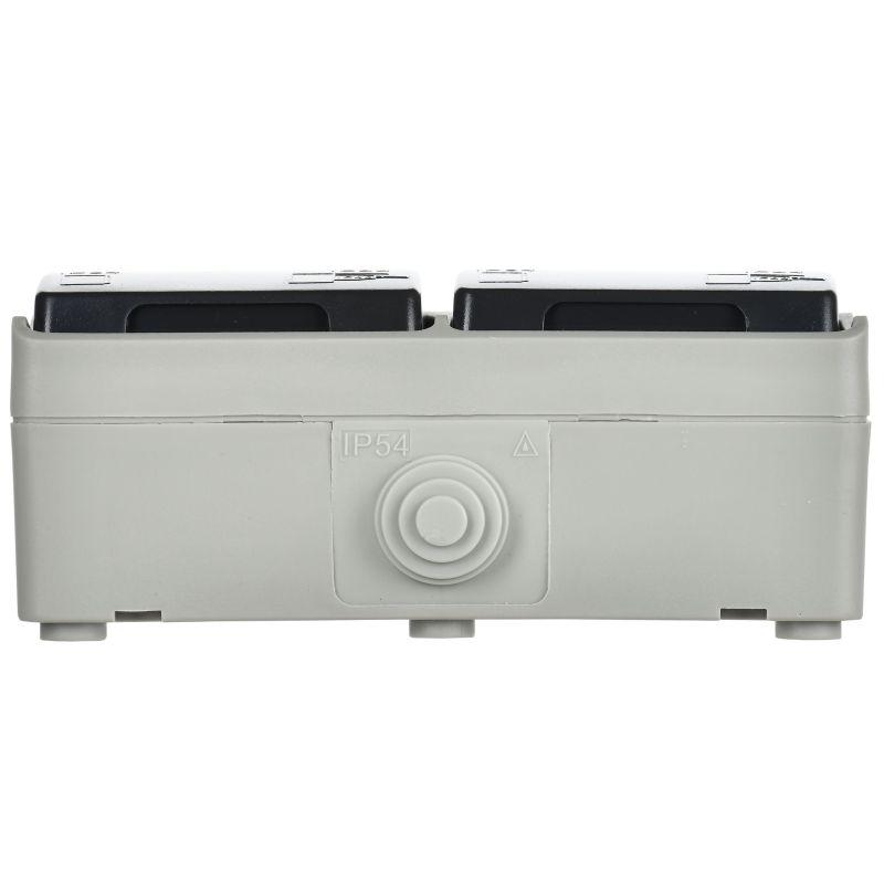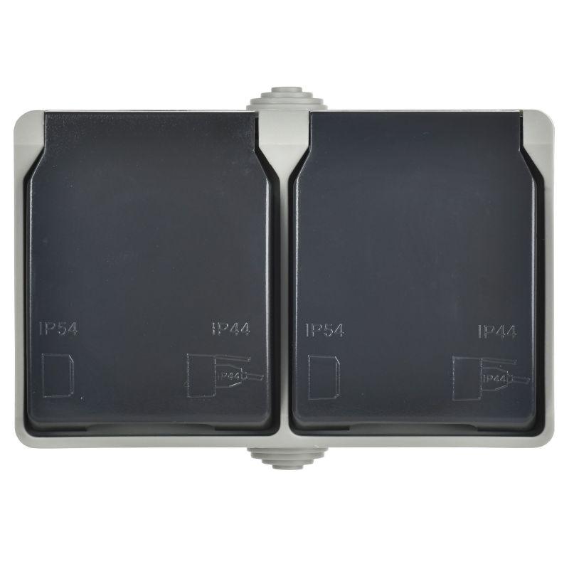 –Розетка 2-м ОП Форс РСб22-3-ФСр 16А IP54 с заземл. с крышкой сер. IEK ERS22-K03-16-54-DC