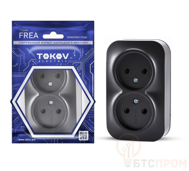 Розетка 2-м ОП Frea 16А IP20 250В без заземл. АБС-пластик карбон TOKOV ELECTRIC TKE-FR-R2-C14 фото в каталоге от BTSprom.by