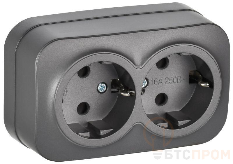 –Розетка 2-м ОП GLORY РС22-3-ХСм 16А с заземл. без защ. шторок сталь матов. IEK ERH21-K46M-16