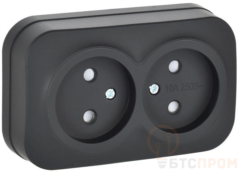 Розетка 2-м ОП GLORY РСш22-2-ХЧм 10А без заземл. защ. шторки черн. матов. IEK ERH23-K02M-10 фото в каталоге от BTSprom.by