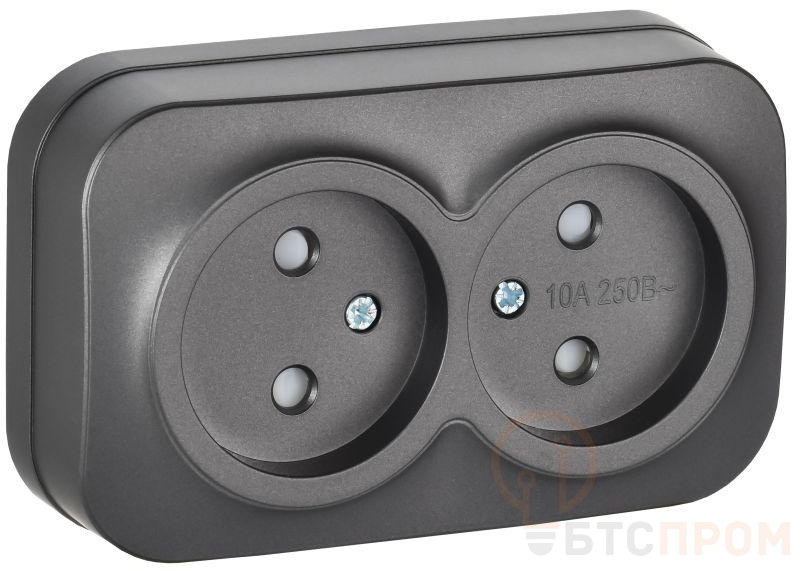 Розетка 2-м ОП GLORY РСш22-2-ХСм 10А без заземл. защ. шторки сталь матов. IEK ERH23-K46M-10 фото в каталоге от BTSprom.by