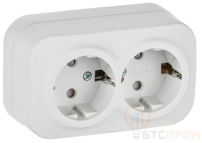 Розетка 2-м ОП GLORY РСш22-3-ХБм 16А с заземл. защ. шторки бел. матов. IEK ERH24-K01M-16 фото в каталоге от BTSprom.by