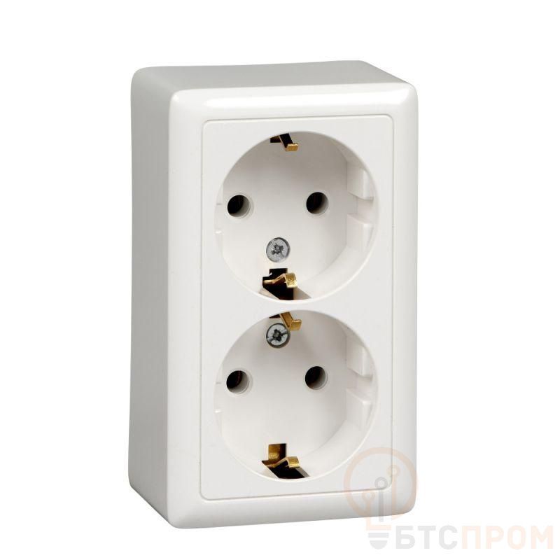 Розетка Systeme Electric (ранее Schneider Electric) ХИТ (открытой установки, цвет белый) двойная с заземлением, без шторок с изолирующей пластиковой пластиной предназначена для сетей до 250 В на ток до 16 А. Двойная розетка позволяет подключить два устройства в одном месте. Заземляющий контакт обеспечивает дополнительную защиту от удара электрическим током. При наличии заземления электрический потенциал уходит в землю, защищая человека. Сделано в России.
