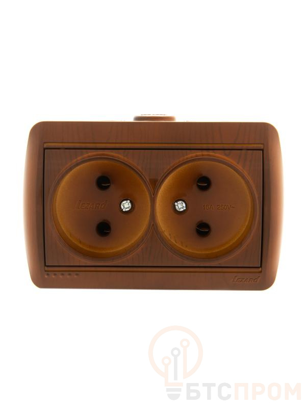 Розетка 2-м ОП Ната керам. без заземл. сосна Lezard 710-0800-128 была представлена потребителю в серии "Ната". Серия "Ната" для накладной установки сочетает в себе гармонию форм с разнообразием цветовых решений, классических и природных оттенков: вишня, ольха, сосна. Изделия данной серии удачно вписываются в интерьер и производят приятное впечатление. Корпус представляет собой форму из негорючего пластика, длиной 120 мм, с основой цвета "сосна" и декоративной рамкой. Основание керамическое. Подпружиненные лапки крепления обеспечивают комфортный и легкий монтаж изделия. Монтируется на глубину 50 мм, на поверхность стены. Рекомендован для жилых помещений и административных зданий.