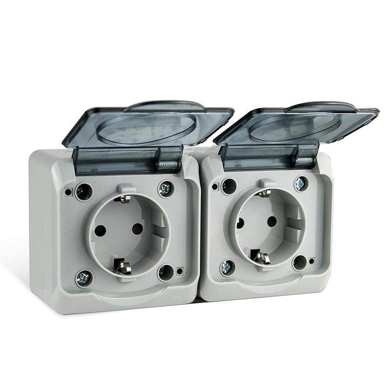 Розетка 2-м ОП Nix 16А IP54 250В с заземл. с прозр. крышкой сер. TOKOV ELECTRIC TKE-NX-R2Z-C06T-IP54