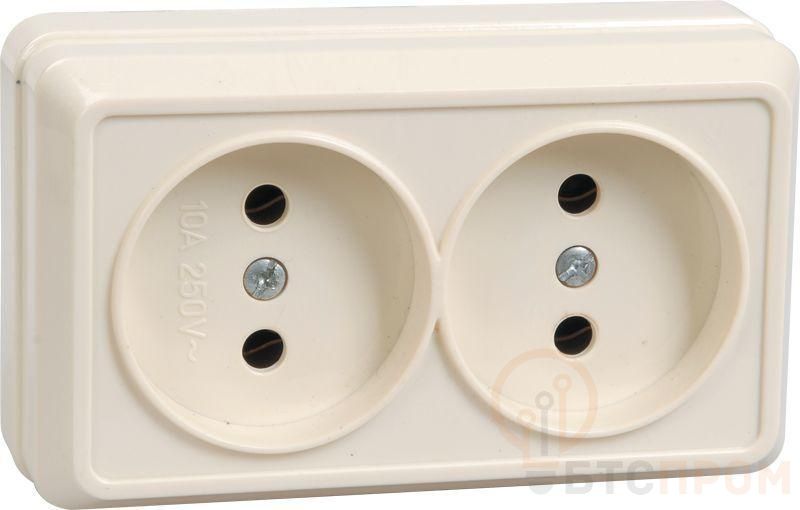 –Розетка 2-м ОП Октава 10А IP20 без заземл. крем. IEK ERO20-K33-10-DC