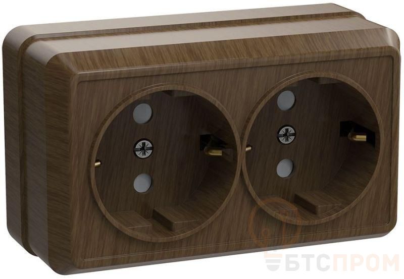 –Розетка 2-м ОП Октава РС22-3-ОД 16А IP20 с заземл. дуб IEK ERO21-K04-16-DC