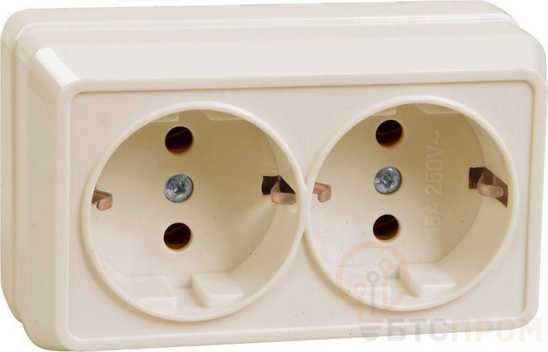 –Розетка 2-м ОП Октава РС22-3-ОКм 16А IP20 с заземл. крем. IEK ERO21-K33-16-DC