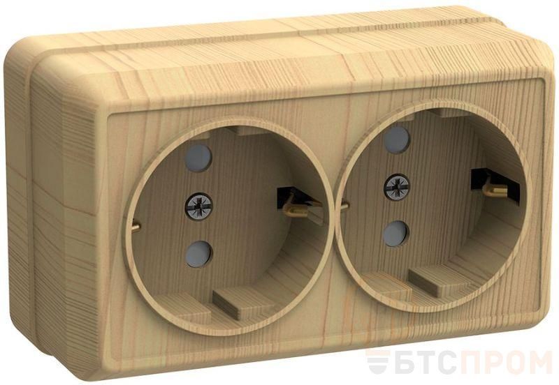 –Розетка 2-м ОП Октава РС22-3-ОС 16А IP20 с заземл. сосна IEK ERO21-K03-16-DC