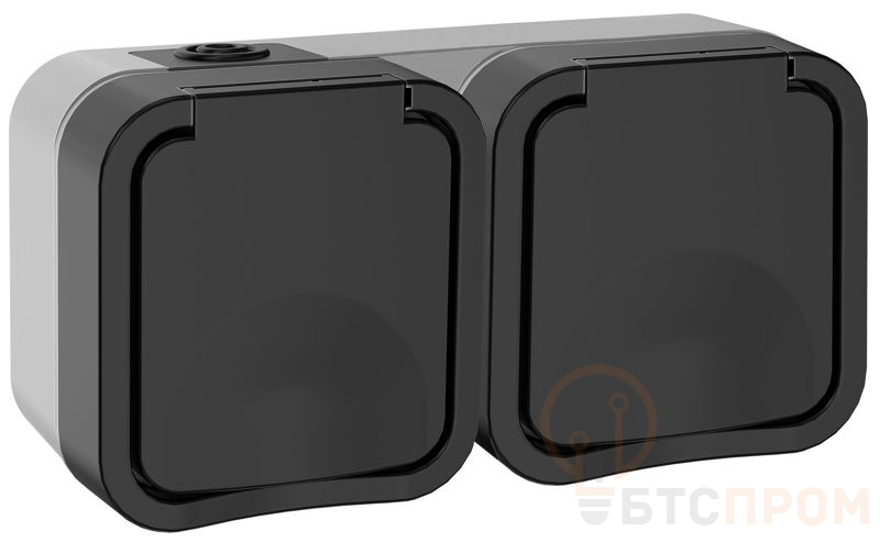 –Розетка 2-м ОП TORS 16А IP55 TS122 горизонт. с заземл. с крышкой графит IEK TS-R26-16-55-G-K53