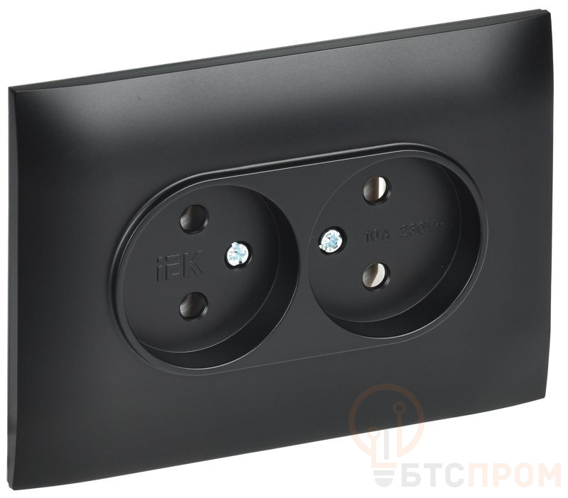 Розетка 2-м SKANDY 10А без заземл. без защ. шторок в сборе SK-R10Bl черн. IEK SK-R20-10-K02-F фото в каталоге от BTSprom.by