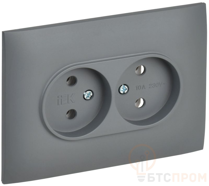 Розетка 2-м SKANDY 10А без заземл. без защ. шторок в сборе SK-R10Gr сер. IEK SK-R20-10-K03-F фото в каталоге от BTSprom.by