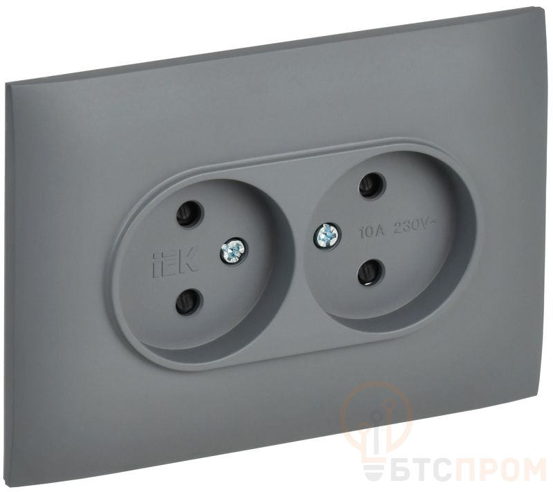 Розетка 2-м SKANDY 10А без заземл. защ. шторки в сборе SK-R09Gr сер. IEK SK-R23-10-K03-F фото в каталоге от BTSprom.by