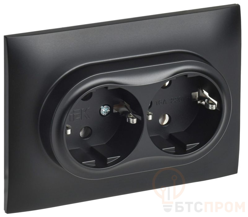 Розетка 2-м SKANDY 16А с заземл. без защ. шторок в сборе SK-R08Bl черн. IEK SK-R21-16-K02-F фото в каталоге от BTSprom.by
