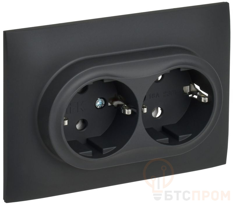 Розетка 2-м SKANDY 16А с заземл. без защ. шторок в сборе SK-R08G графит IEK SK-R21-16-K53-F фото в каталоге от BTSprom.by