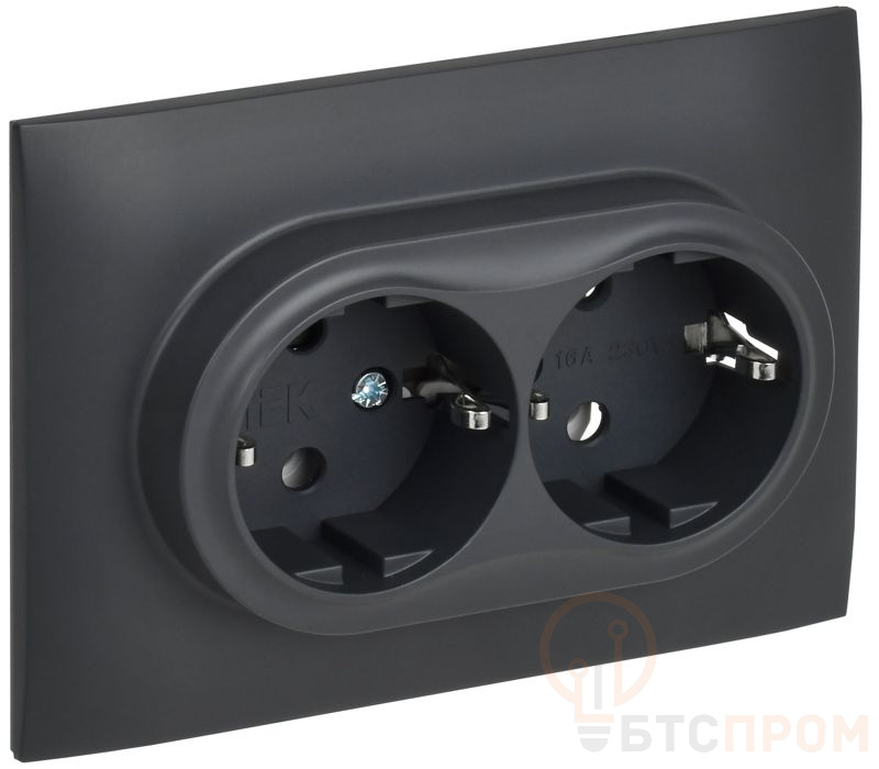 Розетка 2-м SKANDY 16А с заземл. без защ. шторок в сборе SK-R08T титан IEK SK-R21-16-K48-F фото в каталоге от BTSprom.by