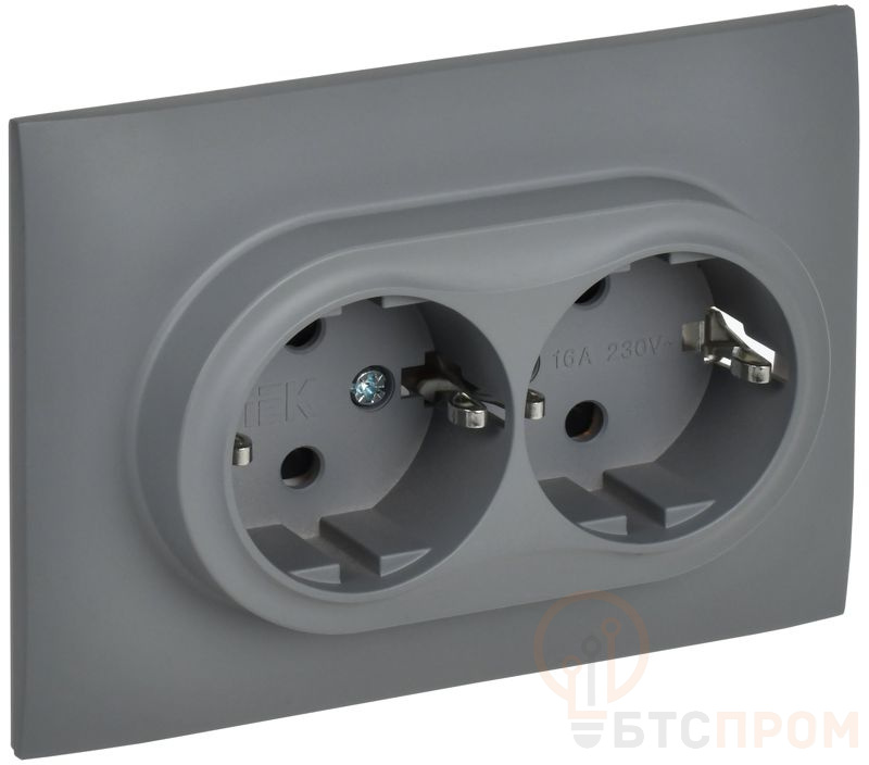 Розетка 2-м SKANDY 16А с заземл. защ. шторки в сборе SK-R07Gr сер. IEK SK-R24-16-K03-F фото в каталоге от BTSprom.by