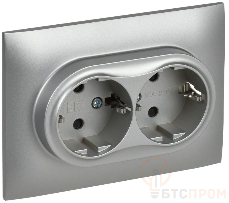 Розетка 2-м SKANDY 16А с заземл. защ. шторки в сборе SK-R07S серебр. IEK SK-R24-16-K23-F фото в каталоге от BTSprom.by