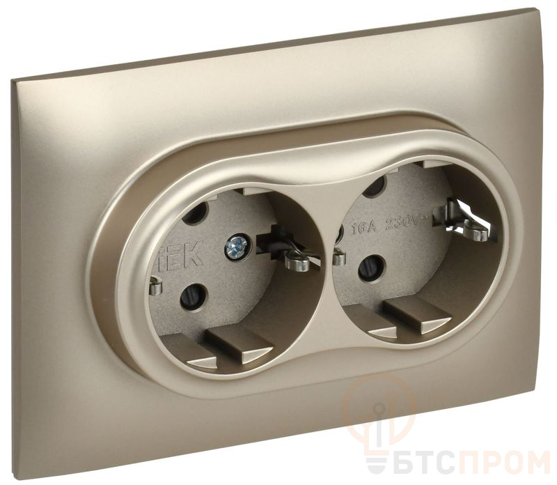 Розетка 2-м SKANDY 16А с заземл. защ. шторки в сборе SK-R07Sh шампань IEK SK-R24-16-K37-F фото в каталоге от BTSprom.by