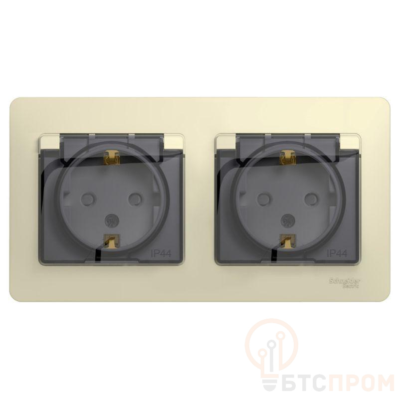 Розетка Systeme Electric (ранее Schneider Electric) серии Glossa (в сборе, цвет бежевый) двойная с заземлением, шторками и крышкой подходит для сетей 250 В, на ток 16 А. - Изделие со степенью защиты IP44 обеспечит безопасность использования в ванной и на кухне. - Заземляющий контакт обеспечивает дополнительную защиту от удара электрическим током. При наличии заземления электрический потенциал уходит в землю, защищая человека. - Выполнен из материала PС+ASA, стойкого к УФ-излучению и появлению царапин.