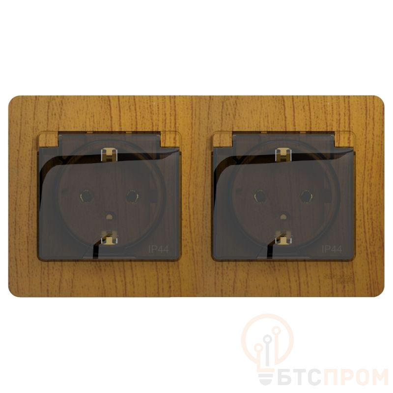 Розетка Systeme Electric (ранее Schneider Electric) серии Glossa (в сборе, цвет дерево дуб) двойная с заземлением, шторками и крышкой подходит для сетей 250 В, на ток 16 А. - Изделие со степенью защиты IP44 обеспечит безопасность использования в ванной и на кухне. - Заземляющий контакт обеспечивает дополнительную защиту от удара электрическим током. При наличии заземления электрический потенциал уходит в землю, защищая человека. - Выполнен из материала PС+ASA, стойкого к УФ-излучению и появлению царапин.