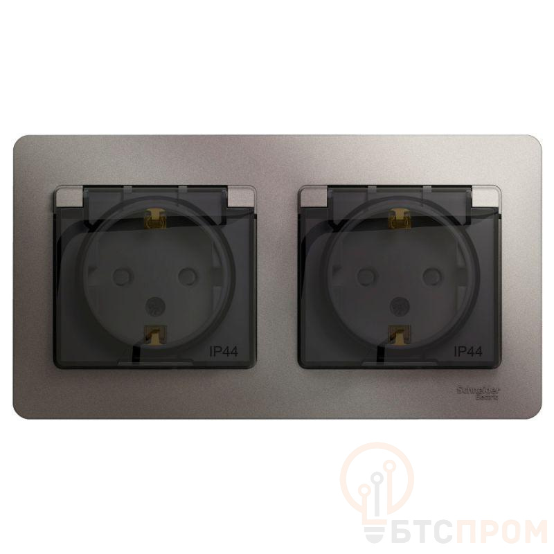 Розетка Systeme Electric (ранее Schneider Electric) серии Glossa (в сборе, цвет платина) двойная с заземлением, шторками и крышкой подходит для сетей 250 В, на ток 16 А. - Изделие со степенью защиты IP44 обеспечит безопасность использования в ванной и на кухне. - Заземляющий контакт обеспечивает дополнительную защиту от удара электрическим током. При наличии заземления электрический потенциал уходит в землю, защищая человека. - Выполнен из материала PС+ASA, стойкого к УФ-излучению и появлению царапин.