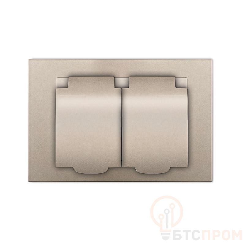 –Розетка 2-м СП Афина 16А IP20 с заземл. c крышкой в сборе шампань Universal A0031-Br