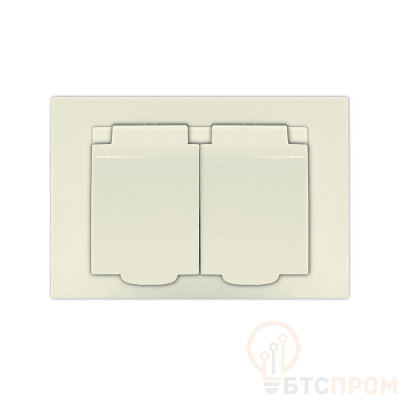 Розетка 2-м СП Афина 16А IP20 с заземл. c крышкой в сборе сл. кость (ivory) Universal A0031-I фото в каталоге от BTSprom.by