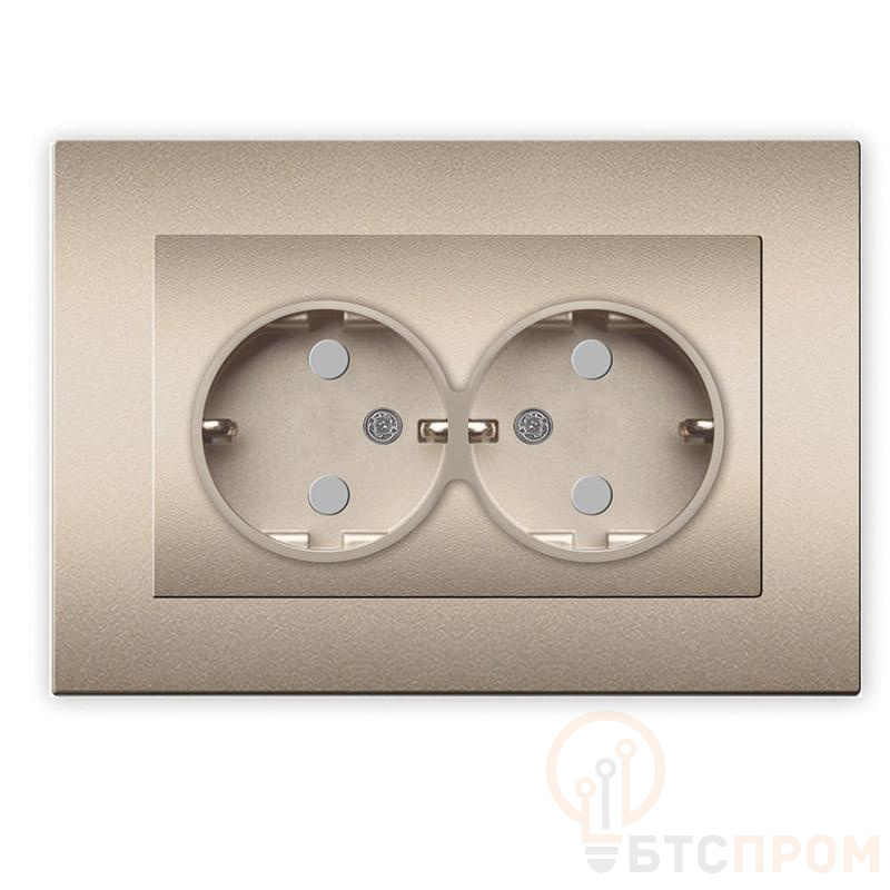 Розетка 2-м СП Афина 16А IP20 с заземл. защ. шторки в сборе шампань Universal A0050-Br фото в каталоге от BTSprom.by