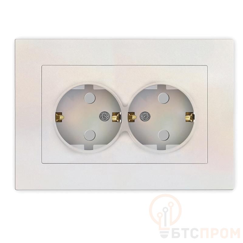 Розетка 2-м СП Афина 16А IP20 с заземл. защ. шторки в сборе жемчуж. Universal A0050-OBr фото в каталоге от BTSprom.by