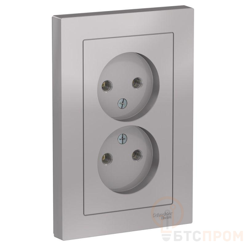 Розетка двойная Systeme Electric (ранее Schneider Electric) серии AtlasDesign (в сборе, цвет алюминий) без заземления и без шторок подходит для сетей 250 В, на ток 16 А. - Лицевые детали из качественного ABS-пластика, устойчивого к царапинам и УФ-излучению. - Усиленные прямые монтажные лапки для лучшей фиксации механизма в монтажной коробке. - Двойная розетка позволяет подключить два устройства в одном месте. - Изделие поставляется в комплекте с рамкой того же цвета.