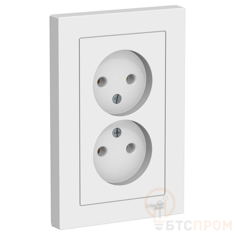 Розетка двойная Systeme Electric (ранее Schneider Electric) серии AtlasDesign (в сборе, цвет белый) без заземления и без шторок подходит для сетей 250 В, на ток 16 А. - Пластик с ионами серебра в белом цвете обеспечивает антибактериальный эффект. - Лицевые детали из качественного ABS-пластика, устойчивого к царапинам и УФ-излучению. - Двойная розетка позволяет подключить два устройства в одном месте. - Изделие поставляется в комплекте с рамкой того же цвета.